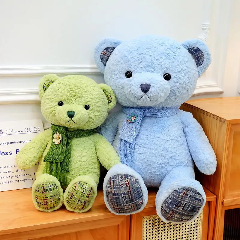 Cute Teddy Bear Wholesale Plush Doll Pillow Soft Stuffed Animal Bear With Scarf Rose Fluffy Toy for Gifts