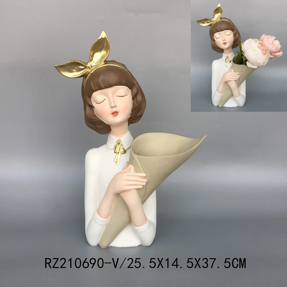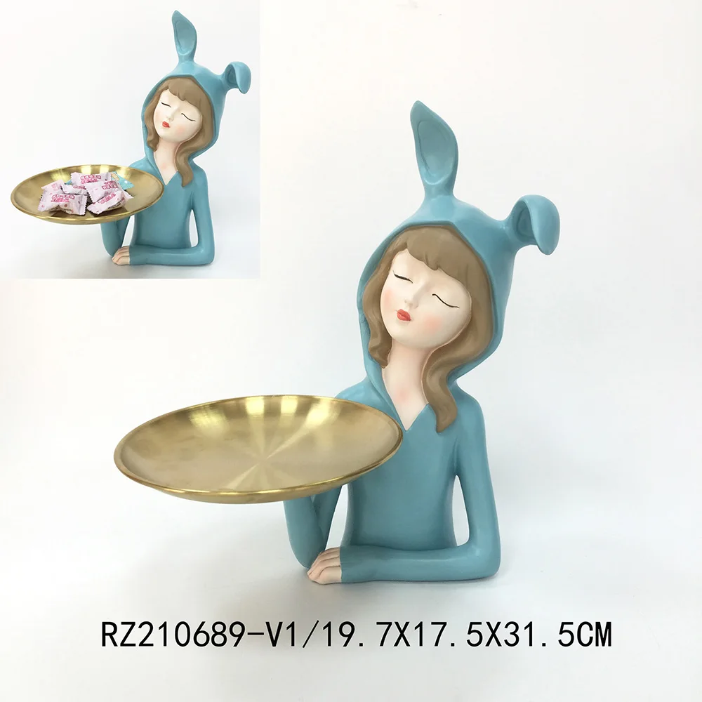 Modern Girl Holding Tray Tissue Holder Key Storage Tray Vase Character Sculpture Resin Ornament Wholesale Unique Animal Storage